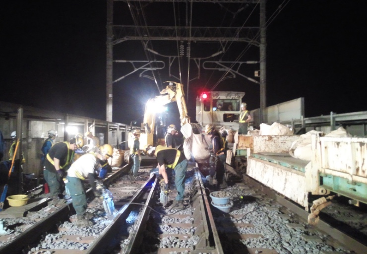 新幹線のレール等の補修工事